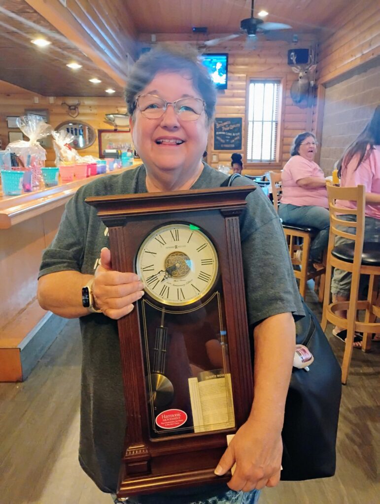 Lisa, one of our fantastic volunteers was the winner of the Howard Miller pendulum clock during our gift basket giveaway! Congratulations Lisa!